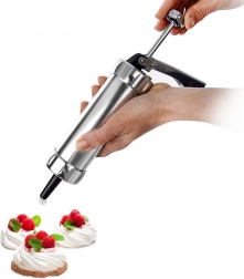 Poza ciastkami możesz zdobić torty i desery dzięki 4 dyszom do kremów i bitej śmietany. Jedno naciśnięcie dźwigni zapewnia równomierne dozowanie.
