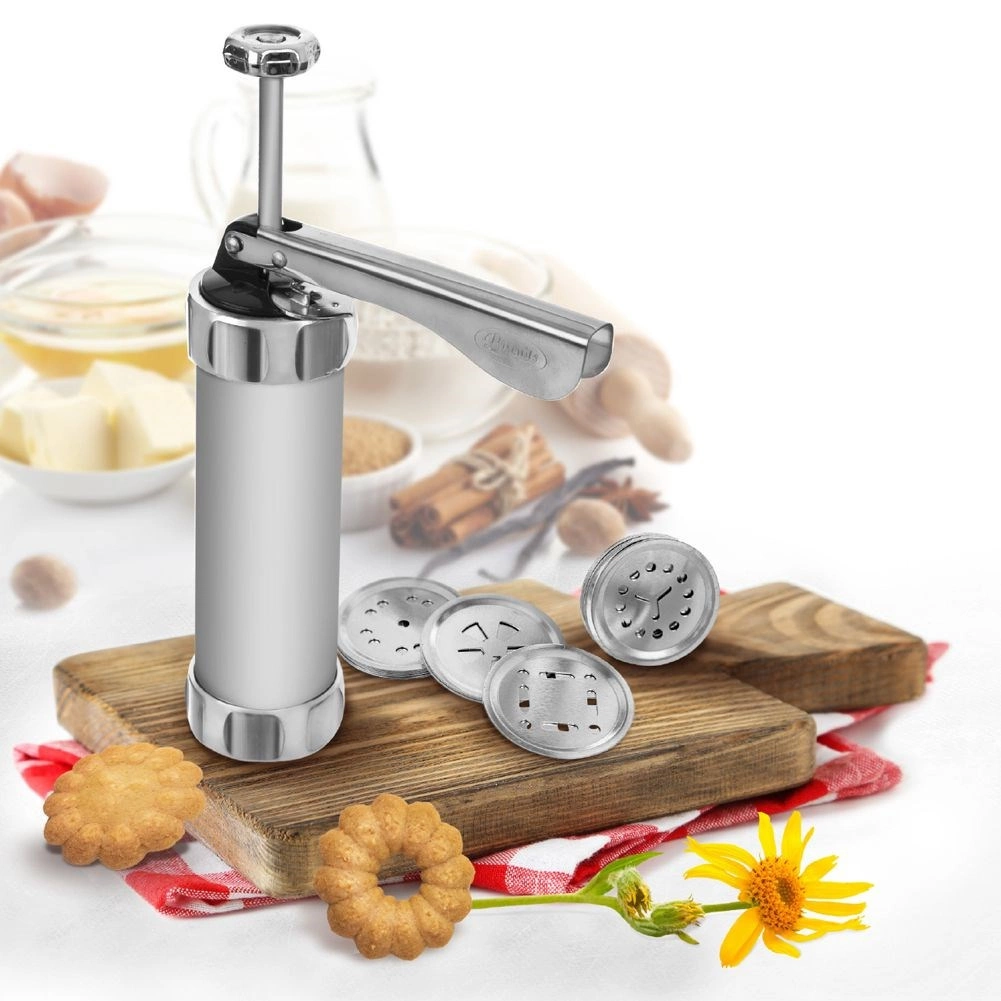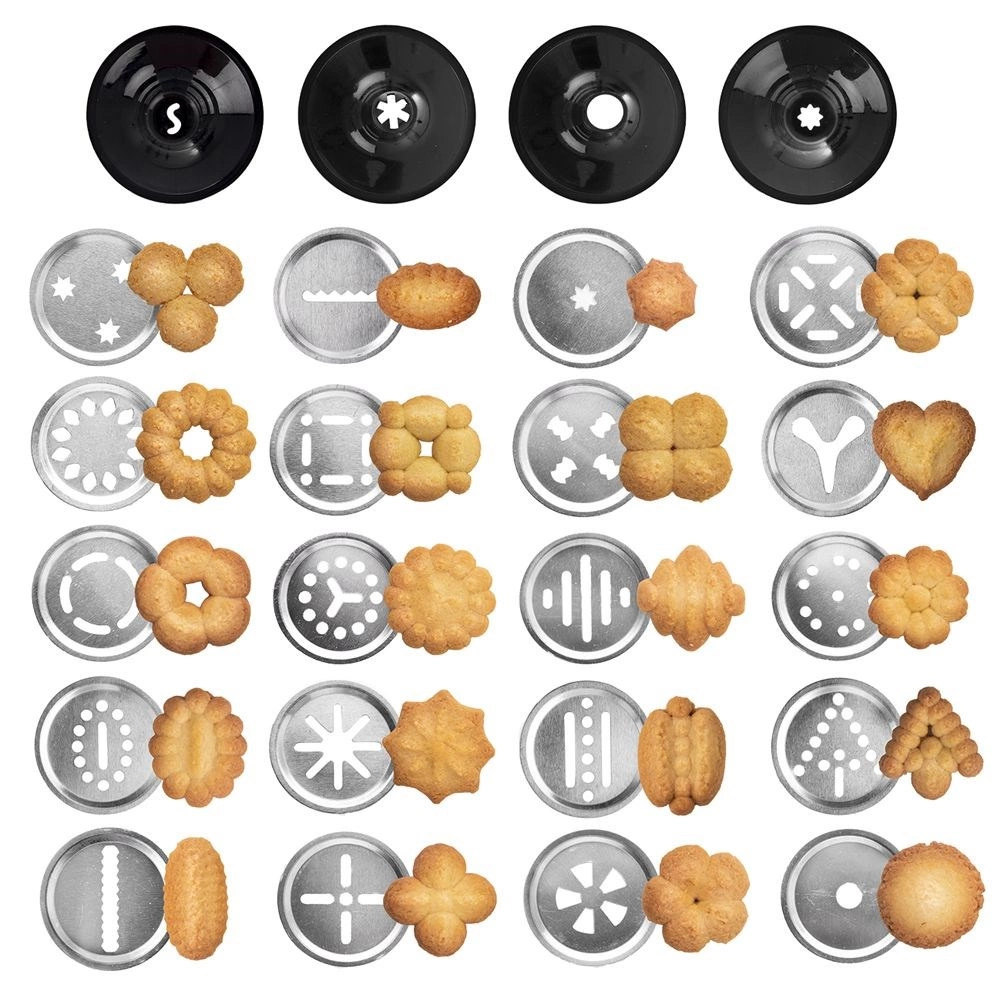 Z jednego zestawu przygotujesz dziesiątki różnych stylów ciastek – gwiazdki, kwiaty, paseczki czy serca. Wystarczy wymienić dysk i wyciskać.