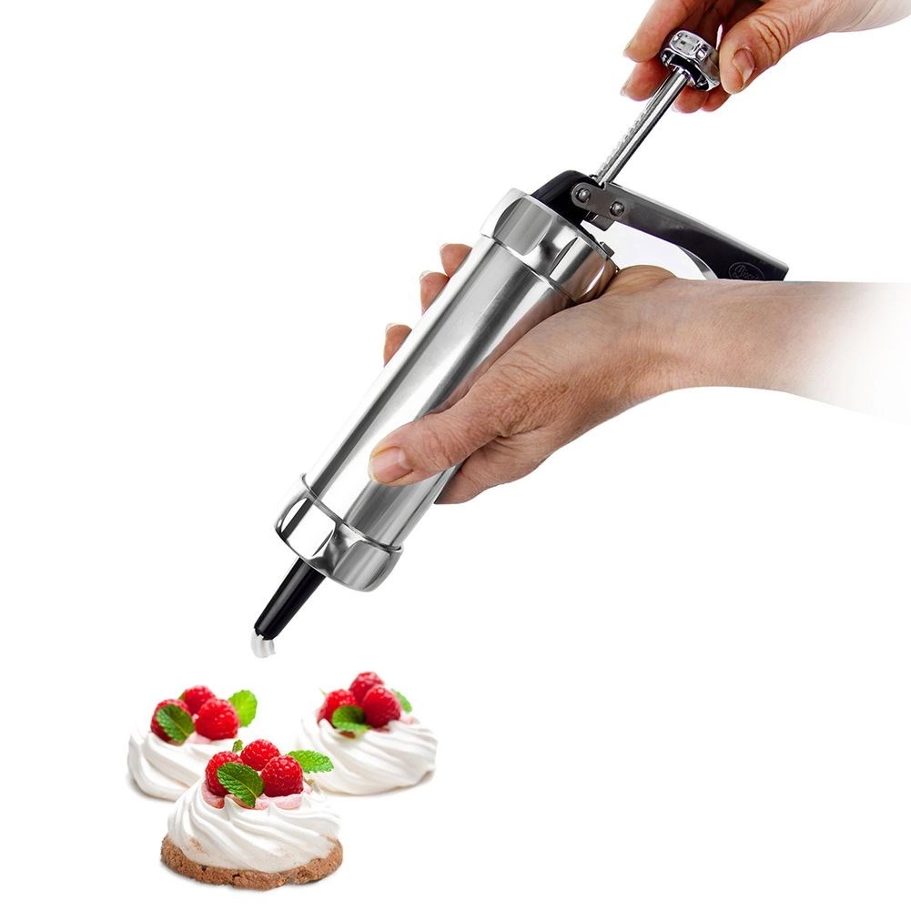 Wytrzymałe metalowe korpus i mechanizm tłokowy zapewniają stabilność, kontrolę i powtarzalne rezultaty podczas pracy z ciastem i kremami.