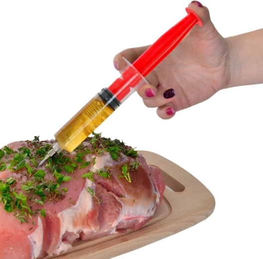 Strzykawka wykonana jest z bezpiecznych materiałów przeznaczonych do kontaktu z żywnością. Tłok dostępny w różnych kolorach (czarny, czerwony, biały) – wysyłamy losowo. Idealna do pieczenia, grillowania, pieczenia szynki oraz domowego wędzenia, gdzie skraca czas marynowania i poprawia przesolenie.