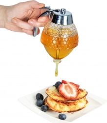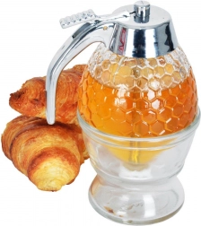 Ciesz się miodem, syropem klonowym lub polewą czekoladową bez bałaganu. Dozownik z fakturą plastra miodu wykonany jest z wytrzymałego szkła i wyposażony w spust zapewniający płynne, równomierne wylewanie przez dolny otwór wylotowy. Podstawka służy jako tacka ociekowa, dzięki czemu stół pozostaje czysty.