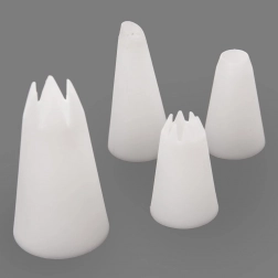 Cztery wielorazowe plastikowe tylki pozwalają tworzyć różne kształty i struktury kremu – od delikatnych gwiazdek po wyraziste krawędzie.