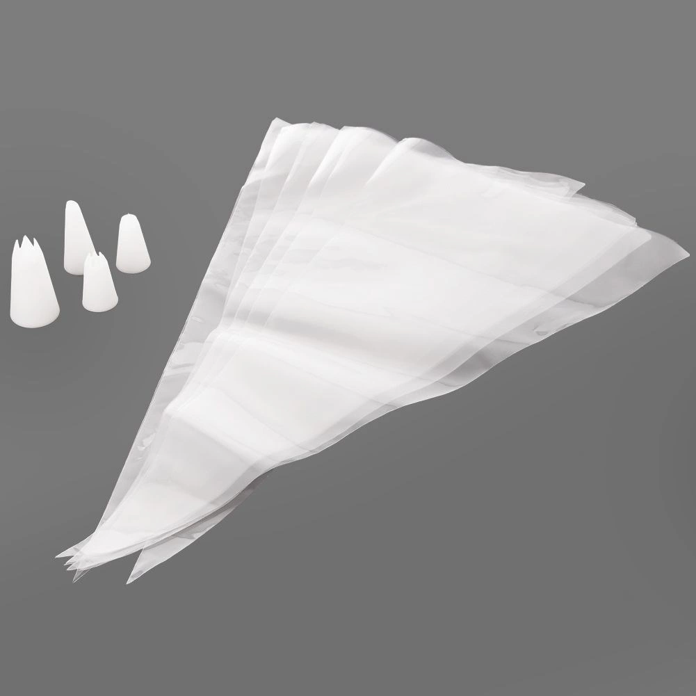 Praktyczny zestaw do dekorowania i nadziewania wyrobów cukierniczych zawiera 8 jednorazowych rękawów cukierniczych o długości 35 cm oraz 4 wielorazowe plastikowe końcówki. Idealny do dekorowania tortów, muffinów, deserów oraz do nadziewania pączków i ozdabiania dań wytrawnych. Wytrzymałe materiały, łatwe użycie i możliwość mycia w zmywarce zapewniają wygodne i higieniczne użytkowanie w domu i gastronomii.