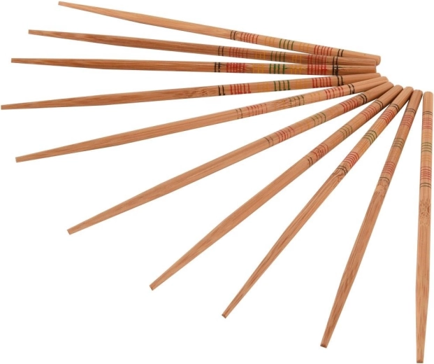 Stylowe bambusowe pałeczki do sushi o długości 22,5 cm w opakowaniu 10 sztuk (5 par) do wygodnego serwowania dań kuchni azjatyckiej. Są lekkie, wytrzymałe i przyjemne w dłoni, z dekorowaną powierzchnią i impregnowanym drewnem, które nie pochłania wilgoci ani zapachów. Idealne do sushi, ramenu, makaronu i spring rolls oraz do precyzyjnego chwytania delikatnych kęsów.