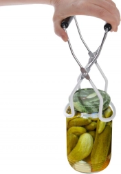 Zakrzywione szczęki z powłoką wykończeniową stabilnie trzymają słoik podczas wyjmowania z wrzątku i chronią przed oparzeniami.