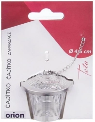 Praktyczne stalowe sitko do herbaty liściastej i ziół o średnicy 4,5 cm z łańcuszkiem i haczykiem do zawieszenia. Wykonane z wysokiej jakości stali nierdzewnej, odpowiednie do zmywarki. Drobna siateczka zatrzymuje wszystkie listki, a bezpieczne zamknięcie zapobiega rozsypaniu zawartości. Uniwersalne zastosowanie do kubka, szklanki i dzbanka.