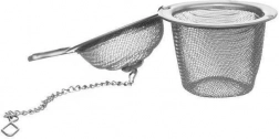 Praktyczne stalowe sitko do herbaty i ziół o średnicy 5 cm z łańcuszkiem i haczykiem do wygodnego zawieszenia na kubku lub czajniczku. Dzięki drobnej siateczce fuski pozostają poza napojem, a Ty delektujesz się czystym smakiem i aromatem świeżo przygotowanego naparu. Wykonane z wysokiej jakości stali nierdzewnej, odpowiednie do zmywarki.