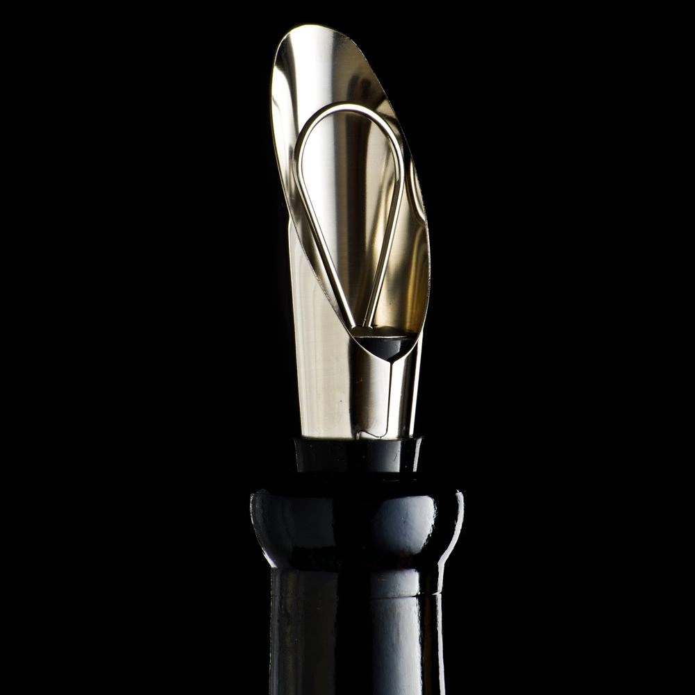 Zwężająca się stalowa wylewka z szczelnym pierścieniem zapobiega kapaniu i utrzymuje szyjkę butelki oraz obrus w czystości przy każdym serwowaniu.