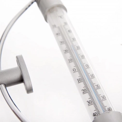 Praktyczny zewnętrzny termometr do dokładnego monitorowania temperatury na balkonie, tarasie lub w ogrodzie. Oferuje czytelną skalę od -40 °C do +50 °C, jest odporny na warunki atmosferyczne i łatwy w montażu. Nowoczesny design z nierdzewnej stali o srebrzystym wykończeniu doskonale pasuje do każdej przestrzeni zewnętrznej.