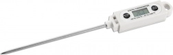 Praktyczny kuchenny termometr z sondą do wbijania i wyświetlaczem LCD do precyzyjnego pomiaru temperatury mięsa i cieczy. Oferuje zakres pomiaru 0–300 °C (również 32–572 °F), dokładne krokowanie co 0,1 °C i jest wykonany ze stali nierdzewnej oraz wytrzymałego plastiku. Idealny do gotowania, pieczenia, smażenia, grillowania i wędzenia. Zasilanie zapewnia bateria LR754 (w zestawie).