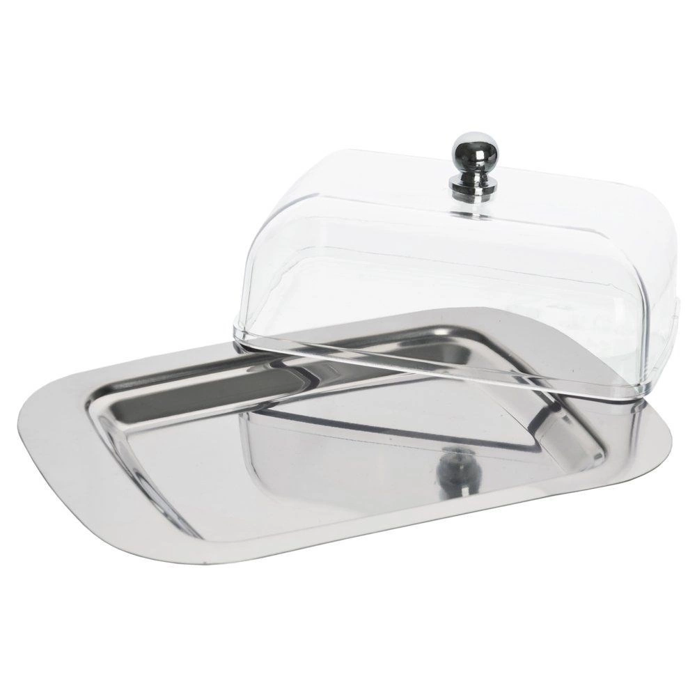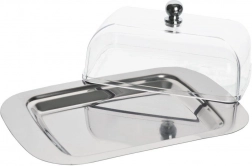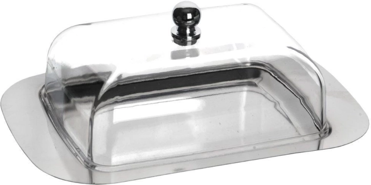 Ta stylowa maselniczka łączy wytrzymałą nierdzewną podstawę z przezroczystą kopułową pokrywką, która chroni masło przed kurzem i zapachami z lodówki, a jednocześnie umożliwia szybki podgląd zawartości. Dzięki ponadczasowemu wzornictwu elegancko dopełni zarówno nowoczesny, jak i rustykalny stół.