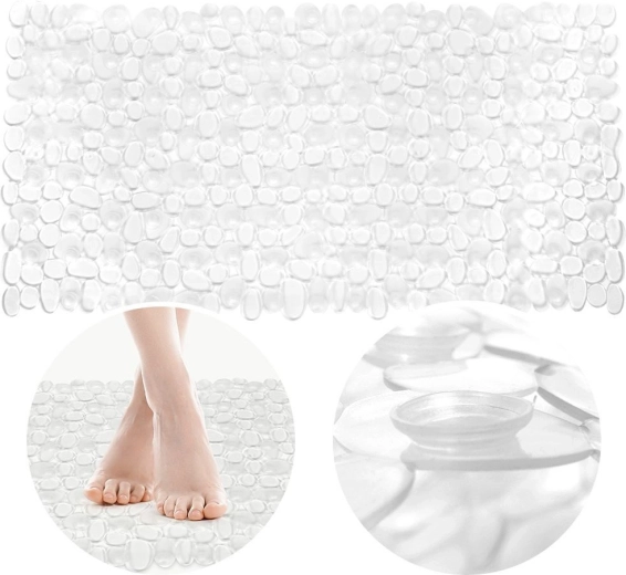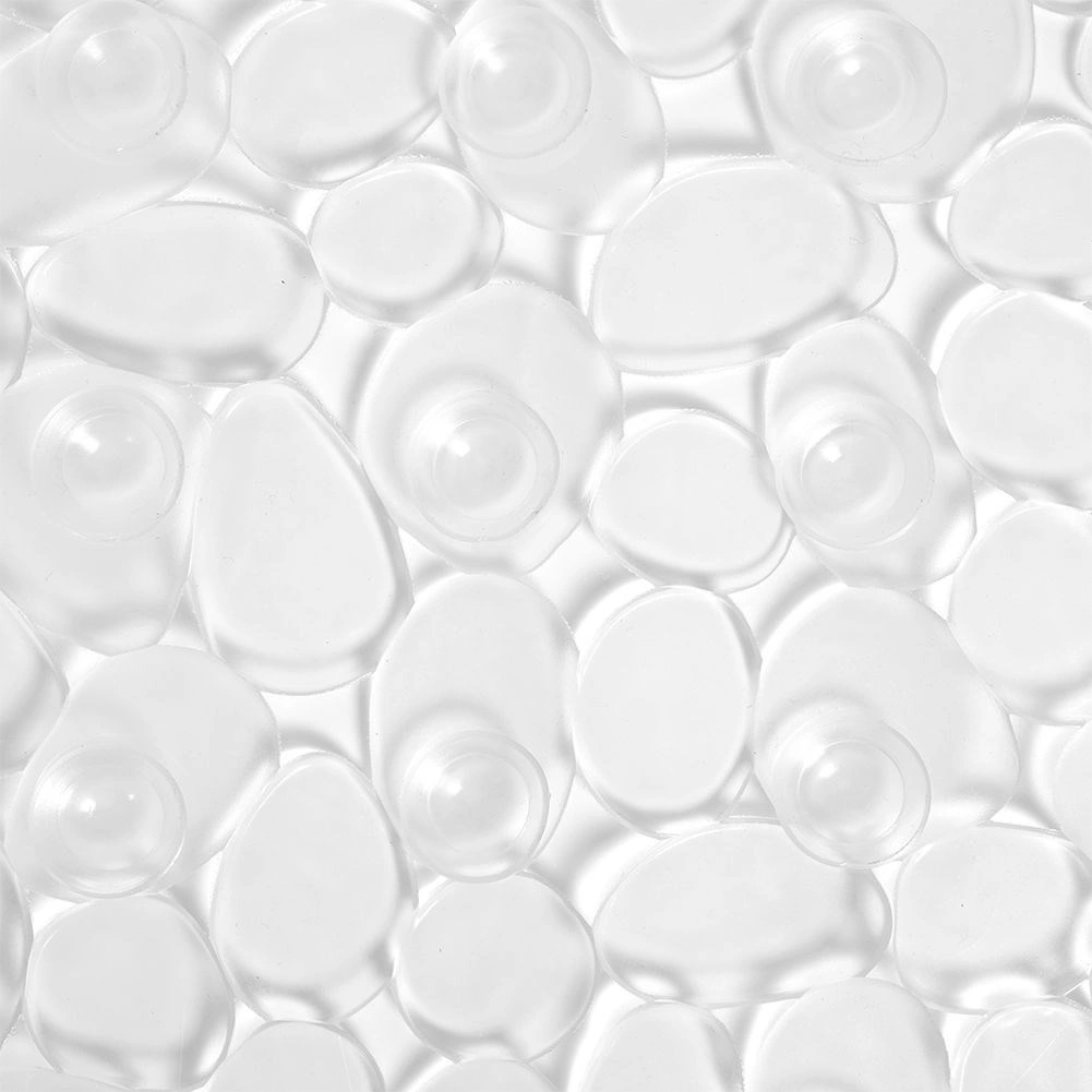 Praktyczna antypoślizgowa mata do prysznica lub wanny zapewnia stabilny krok nawet na mokrej powierzchni. Dzięki dziesiątkom przyssawek mocno trzyma się na miejscu, a delikatna, otoczakowa faktura gwarantuje wygodę podczas kąpieli i prysznica. Przezroczyste wykończenie jest nienachalne i elegancko współgra z każdym stylem łazienki.