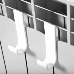Kształt dopasowany do szczebelków grzejnika umożliwia stabilne zawieszenie ręczników i akcesoriów bezpośrednio na elemencie grzejnym dla szybkiego suszenia.