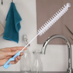 Ta długa i wąska szczotka została zaprojektowana tak, aby bez wysiłku dotrzeć do butelek i naczyń z wąską szyjką. Gęste plastikowe włosie skutecznie usuwa osady i zabrudzenia ze ścianek i dna, a trwałe wykonanie zapewnia długą żywotność. Idealna do butelek, wazonów, butelek dziecięcych, dzbanków i rurek.