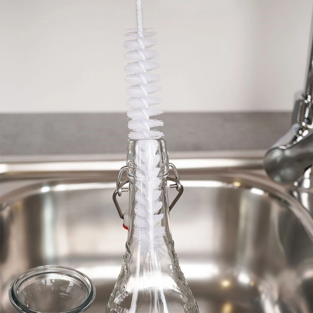Szczotka o długości 35,5 cm z łatwością czyści dno i ścianki butelek, wazonów oraz wąskich dzbanków. Idealna do dokładnego czyszczenia trudno dostępnych miejsc.