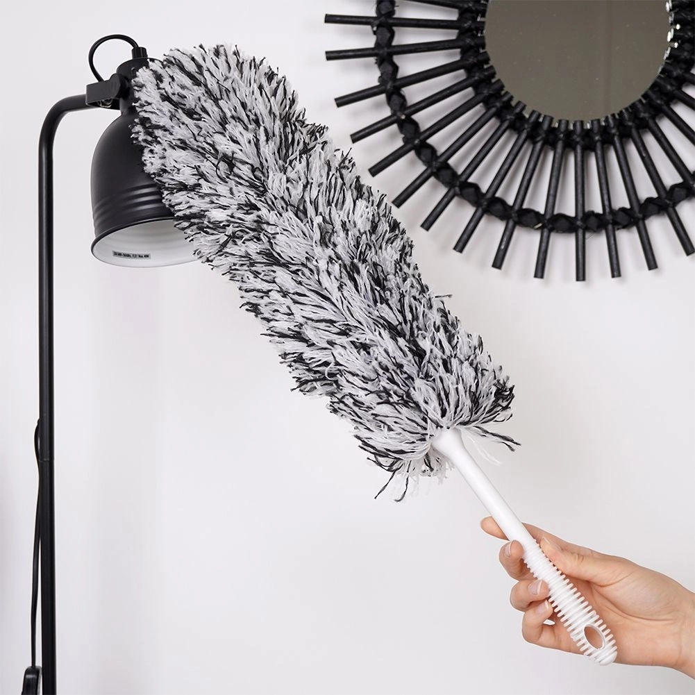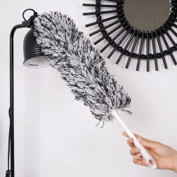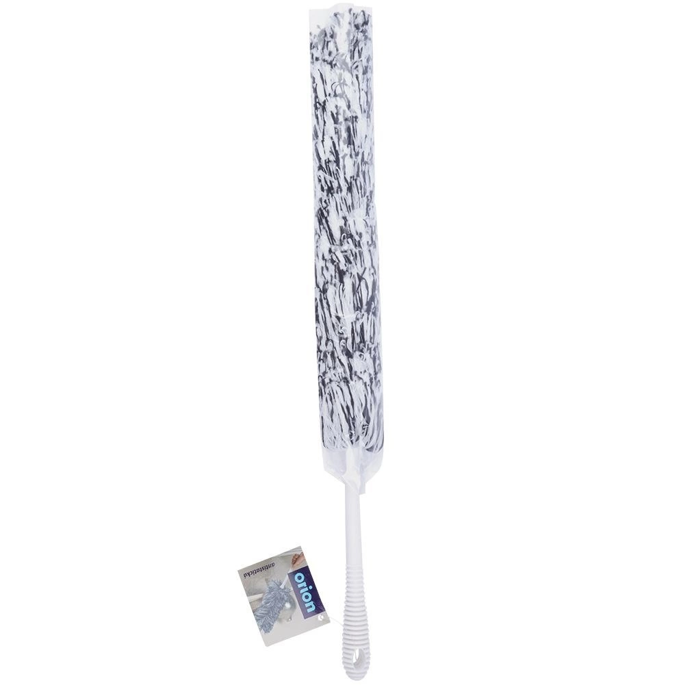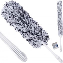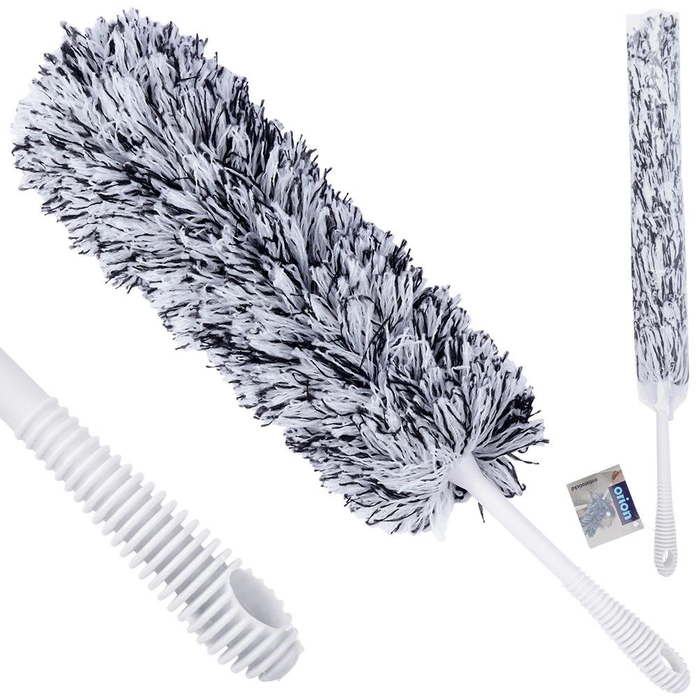 Ta antystatyczna miotełka to idealny pomocnik do szybkiego i delikatnego usuwania kurzu z telewizorów, mebli, lamp, żaluzji i parapetów. Gęsta mikrofibra w szaro-białej kolorystyce skutecznie wychwytuje kurz i alergeny, nie wzbijając zanieczyszczeń w powietrze. Dzięki niskiej wadze i długiemu zasięgowi (55 cm z uchwytem) wyczyścisz również wąskie szczeliny i wyższe półki.