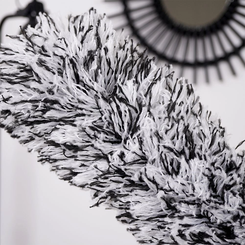 Gęsta szaro-biała mikrofibra działa jak magnes – przyciąga kurz, zamyka go we włóknach i nie wzburza go w powietrze. Idealna do mebli, elektroniki i dekoracji.