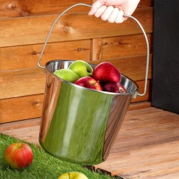 Wszechstronne zastosowanie: od zbioru owoców, przenoszenia wody czy mleka, po użycie na budowie lub jako dekoracyjna osłonka na kwiaty. Wysokiej jakości stal nierdzewna chroni zawartość i utrzymuje higienę podczas przechowywania i transportu.