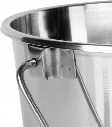 Uniwersalne stalowe wiadro to niezastąpiony pomocnik do codziennych prac w domu i w profesjonalnych zastosowaniach. Gładka powierzchnia ze stali nierdzewnej łatwo się czyści i nie pochłania zapachów, a solidne druciane ucho zapewnia wygodne przenoszenie i możliwość zawieszenia. Wymiary ok. 30 × 33 cm oferują wystarczająco miejsca na wodę, mleko, owoce czy surowce na budowie.