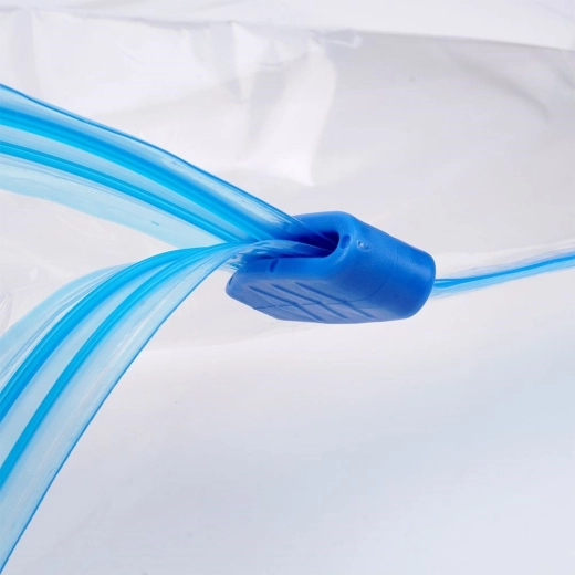 Użycie jest proste: napełnij woreczek ubraniami lub pościelą, zamknij hermetyczny suwak, a następnie przy pomocy odkurzacza lub ręcznej pompki odessij powietrze przez zawór. Materiał jest wystarczająco mocny i trwały, aby służyć wielokrotnie w domu, podczas przeprowadzki i w podróży.