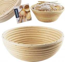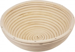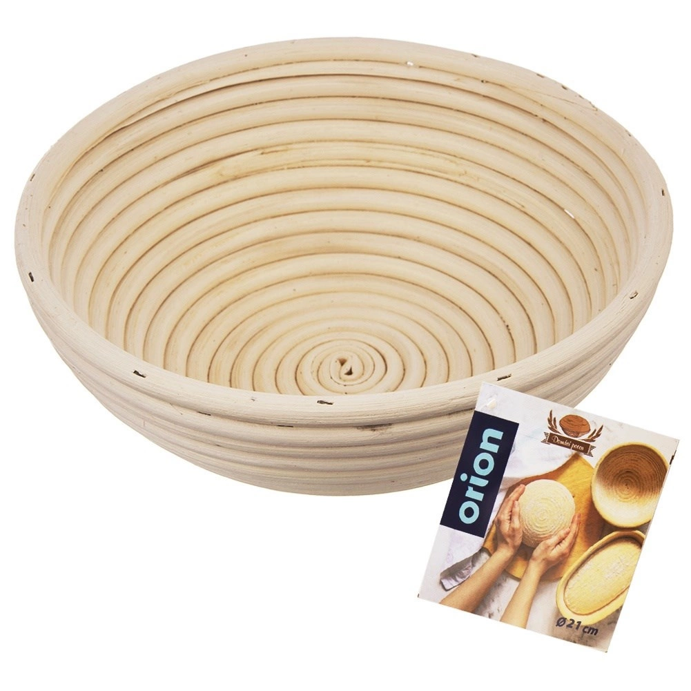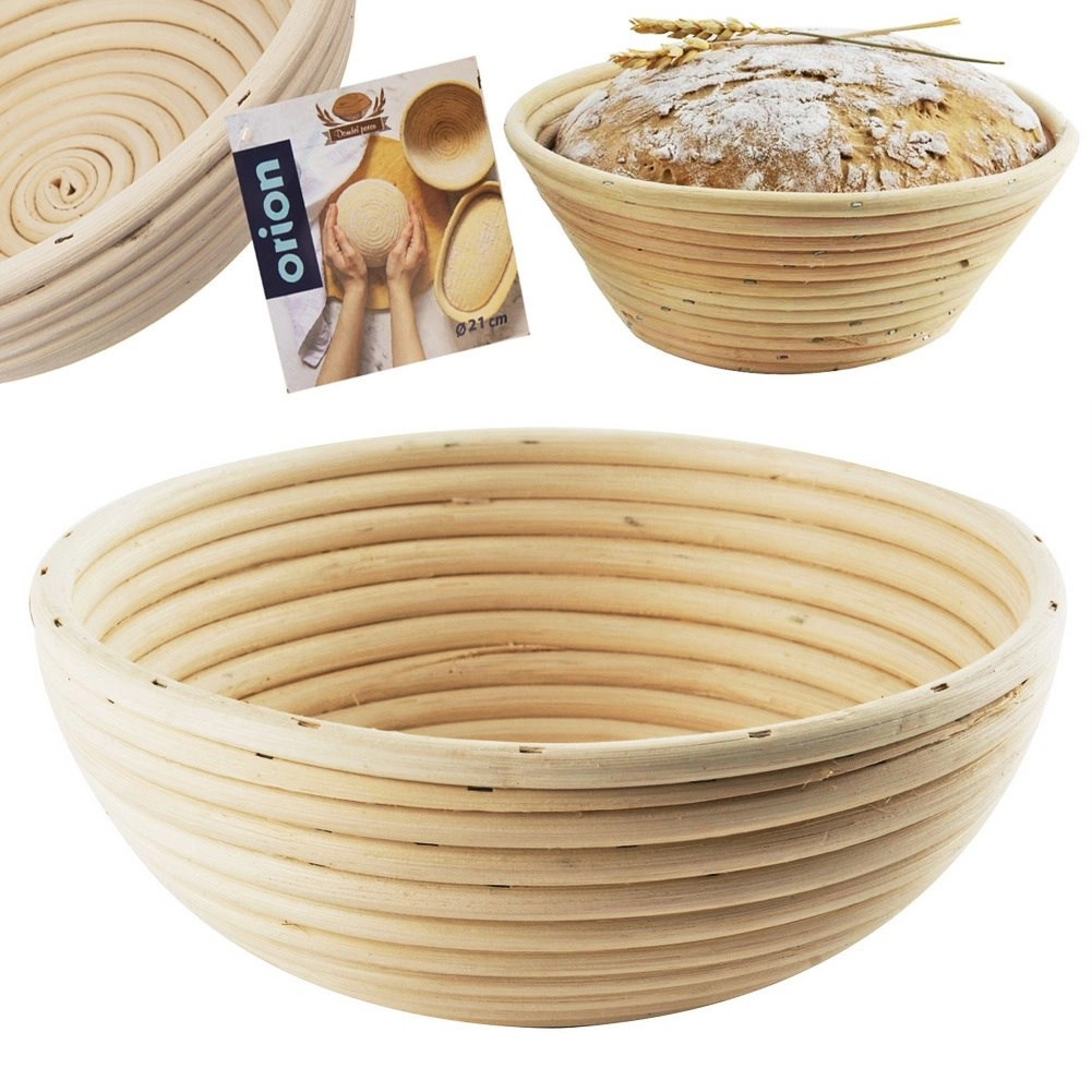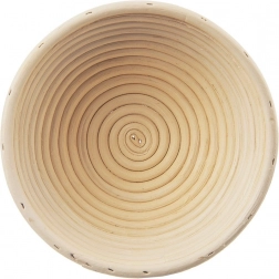 Okrągły koszyk rattanowy o średnicy 21 cm do perfekcyjnego wyrastania domowego chleba o wadze do 1,2 kg. Z naturalnego rattanu w beżowym kolorze, który jest oddychający, lekki i tworzy na skórce dekoracyjny spiralny wzór. Idealny dla stabilnego kształtu bochenka, równomiernego wyrastania i łatwego wyjmowania ciasta.