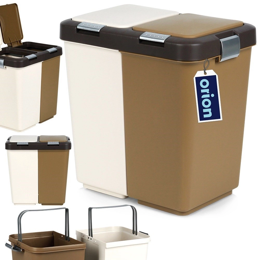 Dwukomorowy kosz na odpady marki ORION ułatwia codzienną segregację. Dwa oddzielone pojemniki umieszczone obok siebie pozwalają przejrzyście rozdzielić plastik, papier czy odpady zmieszane. Każda komora ma własną pokrywę z praktycznym przyciskiem do szybkiego otwierania, dzięki czemu wyrzucisz odpady wygodnie i higienicznie.