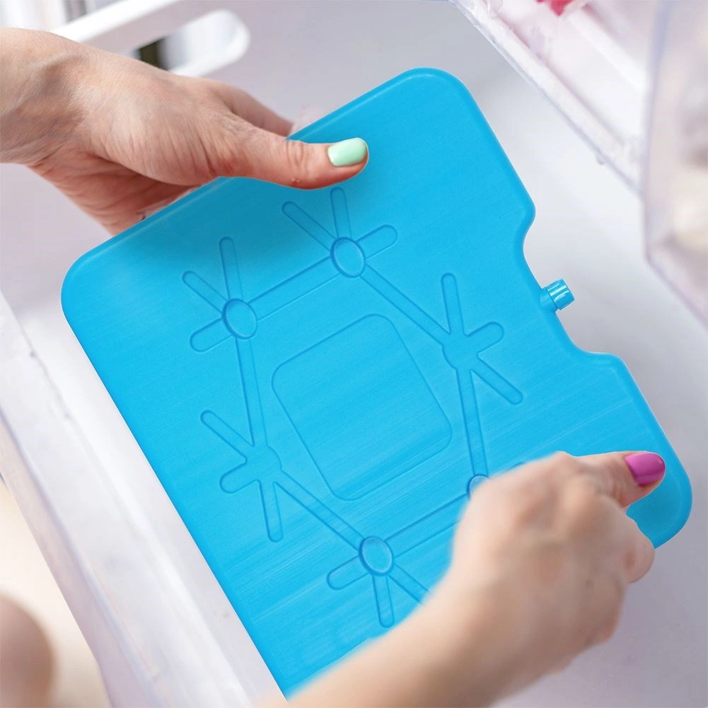 Płaski kształt pasuje do szuflad zamrażarki i wąskich przestrzeni. Wkład wystarczy zamrozić i używać ponownie, gdy tylko potrzebujesz.