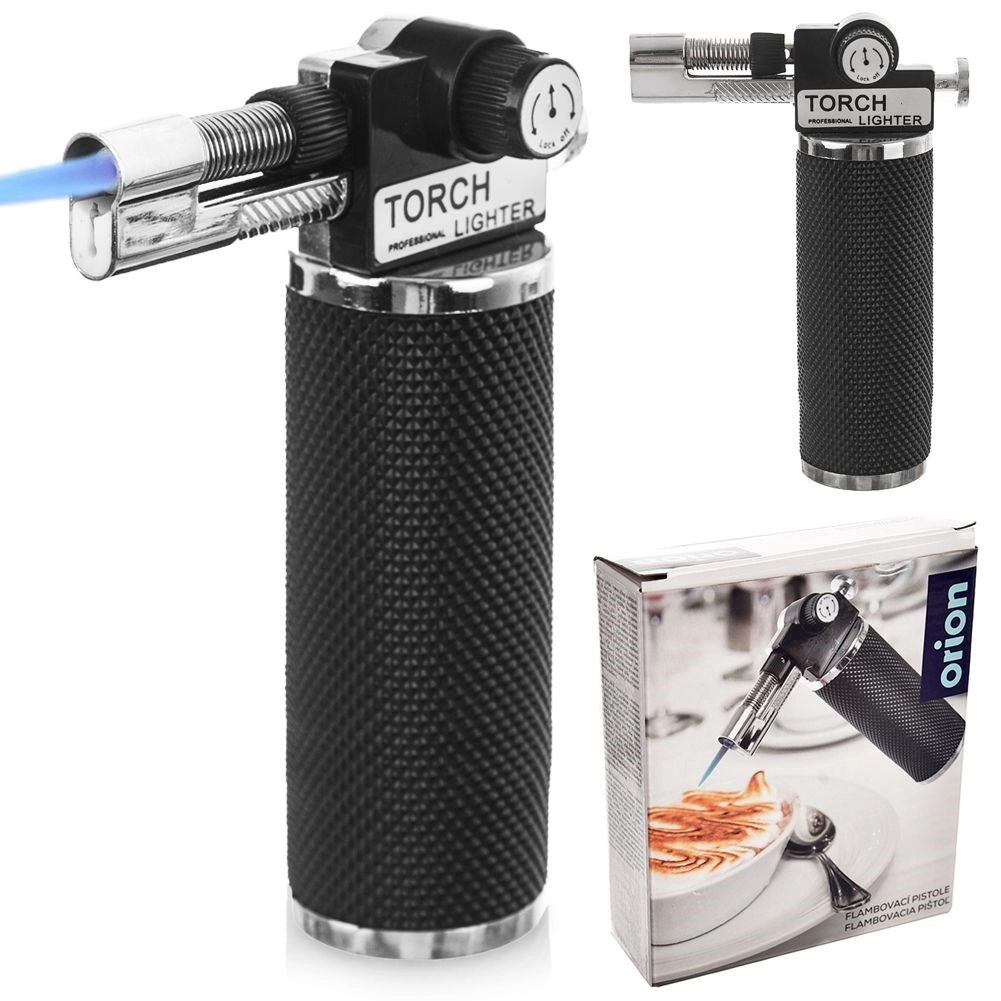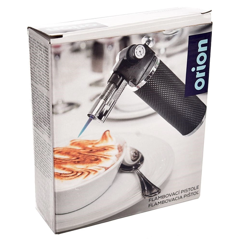 Praktyczny kuchenny gazowy palnik o wysokości 13 cm do precyzyjnego flambirowania i karmelizacji deserów, przyrumieniania mięsa oraz zapiekania serów. Oferuje mocny i wiatroodporny płomień, ergonomiczną, antypoślizgową rękojeść oraz płynną regulację płomienia. Łatwo napełniany standardowym gazem do zapalniczek, idealny do crème brûlée i innych technik kulinarnych.