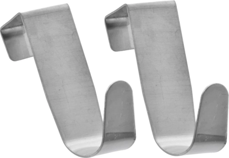 Praktyczny zestaw dwóch haczyków na drzwi z matowej stali nierdzewnej w kolorze srebrnym. Idealne do oszczędzania miejsca w łazience, kuchni czy przedpokoju. Montaż bez wiercenia – wystarczy zawiesić na drzwiach lub szafce. Każdy haczyk ma wymiary 2,5 × 7 cm i jest odpowiedni do drzwi o grubości do 2 cm. Wytrzymałe, uniwersalne i łatwe w użyciu do ręczników, szlafroków, ściereczek lub ubrań.