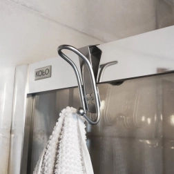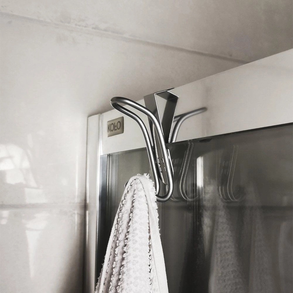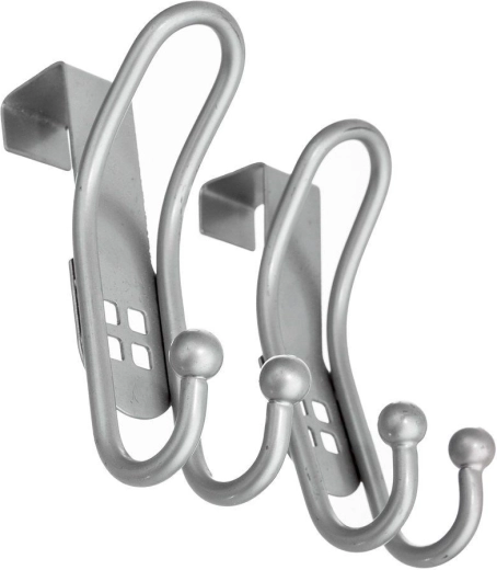 Maksymalizuj przestrzeń bez wiercenia. Podwójne haczyki ze stali nierdzewnej wystarczy zawiesić na górnej krawędzi drzwi, frontów szafek lub szuflad. Trwała stal nierdzewna w eleganckim, srebrnym wykończeniu jest idealna do wilgotnej łazienki oraz codziennego użytkowania w kuchni.