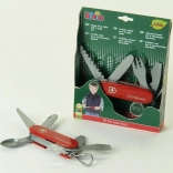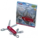 Ta zabawka została zaprojektowana z naciskiem na jakość i szczegóły, aby przypominała prawdziwy szwajcarski scyzoryk. Ma czerwoną obudowę z logo Victorinox i jest wyposażona w praktyczny karabińczyk, który można łatwo przymocować na przykład do paska od spodni.