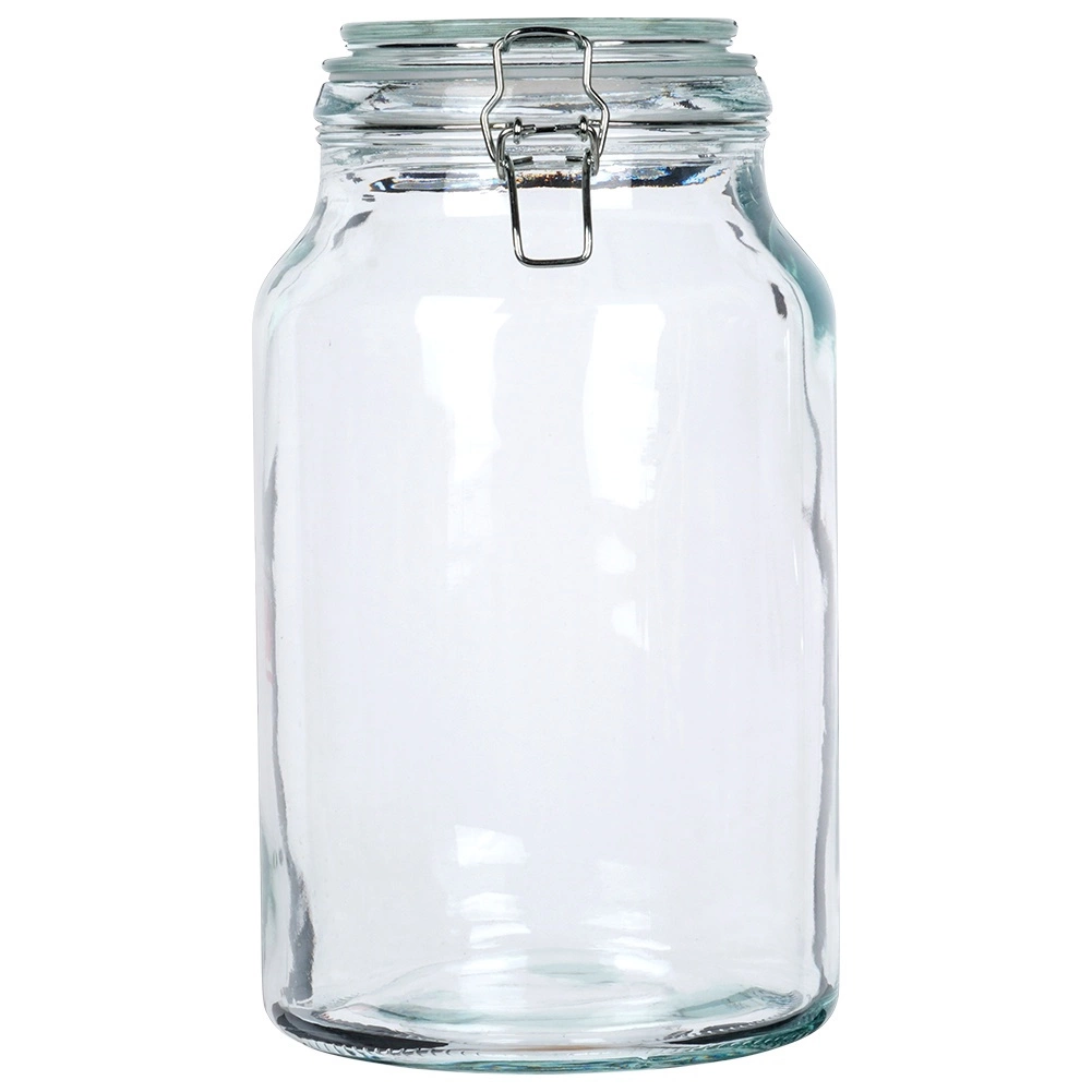 Ten wielkoobjętościowy szklany słój z zamknięciem typu klips idealnie sprawdzi się do codziennego użytku w kuchni. Grube szkło, solidne metalowe klipsy i gumowa uszczelka zapewniają niezawodną szczelność, która chroni żywność przed wilgocią i wydłuża jej świeżość, smak i aromat. Dzięki szerokiemu wlotowi (12 cm) obsługa jest wygodna – z łatwością go napełnisz i dokładnie wyczyścisz.