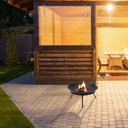 Solidny stojak z mocnymi nogami zapewnia pewność na tarasie i w ogrodzie. Ogień pozostaje bezpiecznie nad ziemią, z dobrym dostępem powietrza.