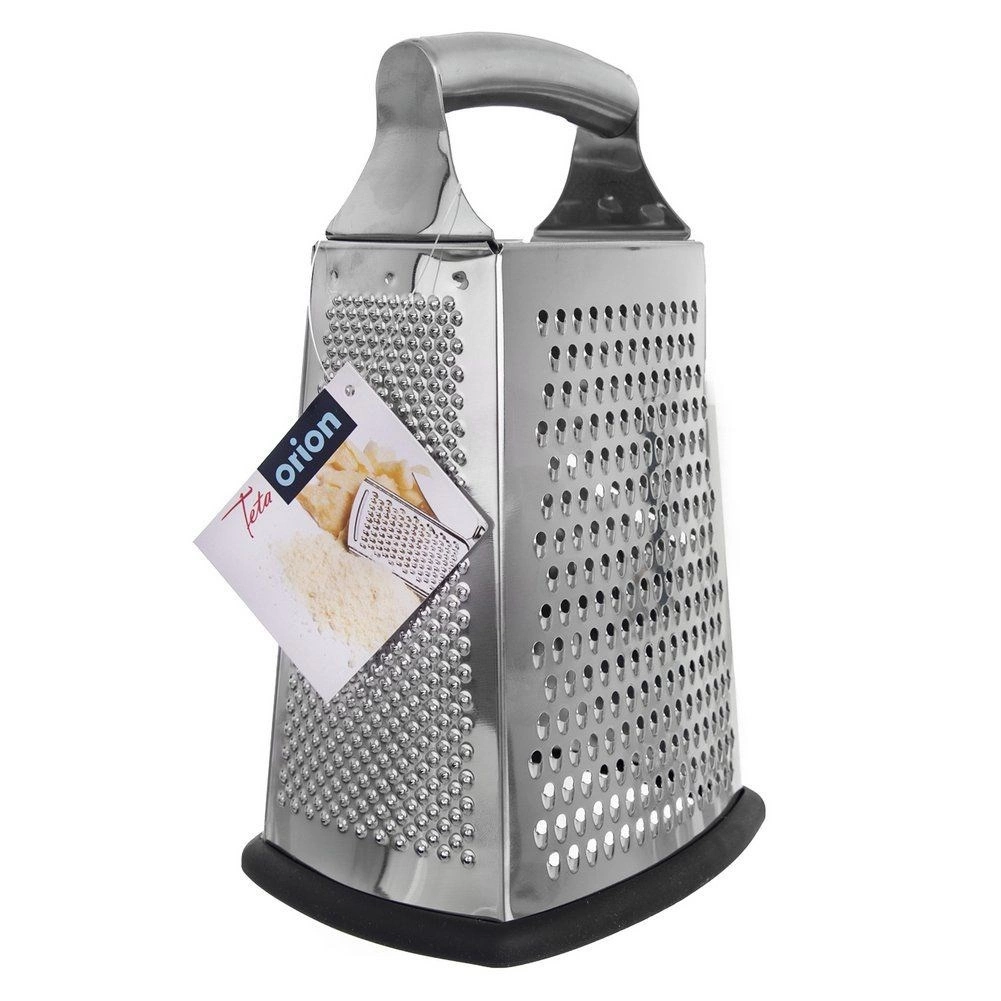Praktyczne 4‑stronne kuchenne tarko z wysokiej jakości stali nierdzewnej do szybkiego tarcia i krojenia składników. Oferuje cztery powierzchnie robocze do różnych zadań, ma wygodny uchwyt oraz antypoślizgową gumową podstawę dla bezpiecznego i stabilnego użytkowania. Można myć w zmywarce, idealne do sera, warzyw, owoców i przypraw.