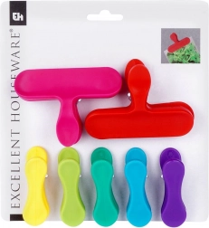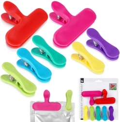 Pięć mniejszych klipsów (6,5 cm) do przypraw i małych torebek oraz dwa większe klipsy (9 cm) do chipsów, makaronu czy płatków śniadaniowych.