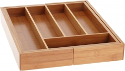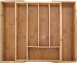 Drewno bambusowe jest odporne na wilgoć i odkształcenia, nie pochłania zapachów i łatwo się czyści. Organizer oferuje 5 do 7 przegródek w zależności od wybranego rozszerzenia, więc dopasujesz wnętrze do swoich potrzeb – od widelców i łyżek po obieraczki, trzepaczki czy nożyczki kuchenne.