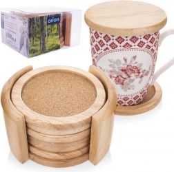 W zestawie znajduje się praktyczny stojak, który trzyma wszystkie podkładki razem i oszczędza miejsce na blacie kuchennym oraz w szafce. Przy właściwym użytkowaniu zestaw dzięki starannemu wykonaniu z drewna i korka posłuży wiele lat.