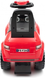Pod siedziskiem znajduje się praktyczny schowek na zabawki i drobiazgi. Cztery duże plastikowe kółka (ok. 13 cm) zapewniają stabilność i płynną jazdę. Jeździk jest odpowiedni dla dzieci od 12 do 36 miesięcy o udźwigu do 27 kg.