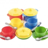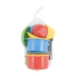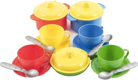 Za pomocą tego kolorowego zestawu naczyń dla dzieci, dzieci mogą wszędzie cieszyć się przygotowywaniem wyimaginowanych smakołyków. Świetnie nadaje się do piasku, ogrodu lub plaży, wspierając kreatywność i interaktywną zabawę. Naczynia wykonane są z trwałego plastiku, zaprojektowane dla małych rączek.