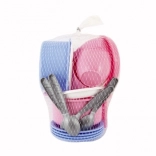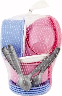 Naczynia wykonane są z trwałego plastiku, który jest lekki i bezpieczny dla dzieci, idealny do aktywności na świeżym powietrzu.