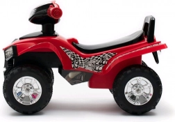 Zabawny i stabilny dziecięcy quad BABY MIX to idealny jeździk dla małych kierowców od 12 do 36 miesięcy. Oferuje 3 melodie, klakson oraz migające światełka na kierownicy, które wspierają zabawę i rozwój motoryki. Dzięki szerokiemu siedzisku, ergonomicznym kierownicom i dużym plastikowym kołom jazda jest wygodna i bezpieczna. Praktyczny schowek pod siedziskiem pomieści drobne zabawki. Wykonany z wysokiej jakości, wytrzymałego plastiku, nośność do 27 kg.