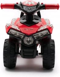 Ten dziecięcy jeździk w formie quada w atrakcyjnym, niebieskim kolorze dostarcza mnóstwo zabawy i pewności podczas pierwszych przejażdżek. Stabilne, czterokołowe podwozie, szeroka kierownica i wygodne siedzisko gwarantują bezpieczną jazdę w domu i na zewnątrz. Efekty dźwiękowe z trzema melodiami, klaksonem oraz migającymi światłami na kierownicy pobudzają wyobraźnię i uczą dzieci związku między naciśnięciem przycisku a reakcją.