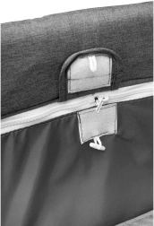 Trwała tkanina melanżowa łatwo się czyści, a praktyczne kieszenie i elementy na zamek ułatwiają organizację niezbędników w podróży.
