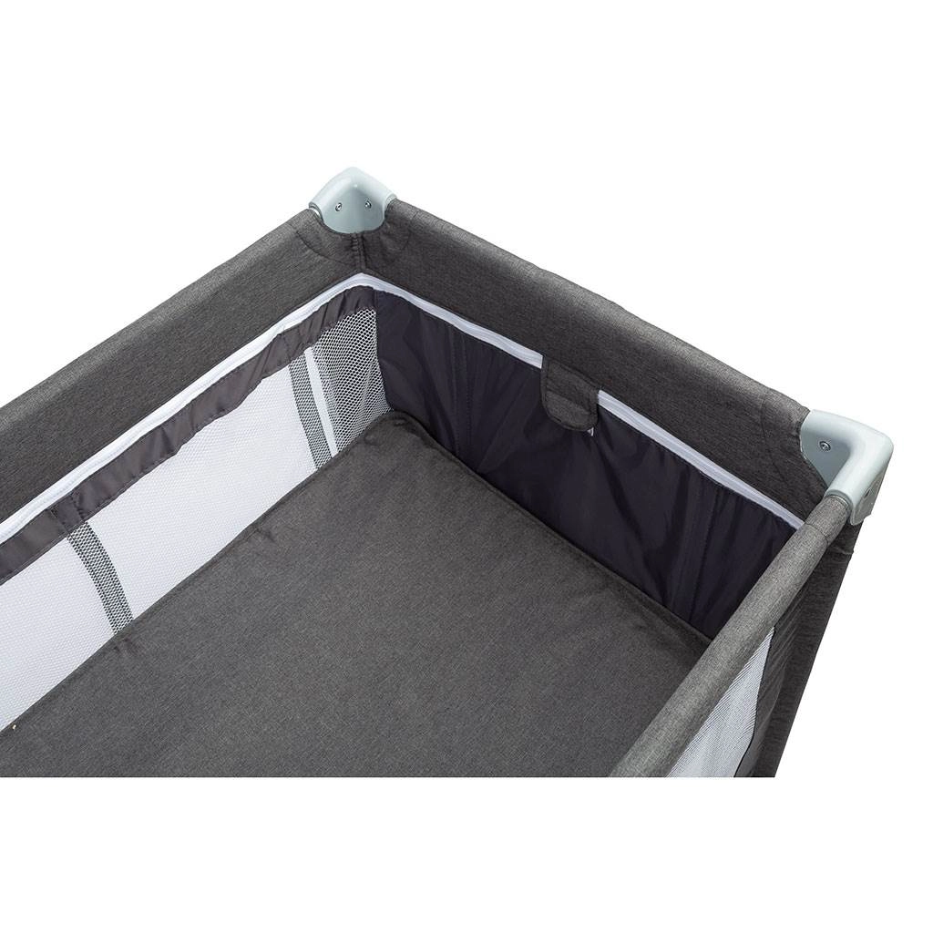 Łóżeczko turystyczne Caretero Basic Plus graphite to niezawodne rozwiązanie zapewniające komfortowy sen i bezpieczną zabawę w domu oraz w podróży. Wysokiej jakości tkanina melanżowa jest przyjemna w dotyku, trwała i łatwa w czyszczeniu, dzięki czemu łóżeczko długo wygląda świetnie. Dzięki szybkiemu mechanizmowi składania i dołączonej torbie do przenoszenia bez trudu zabierzesz je wszędzie.