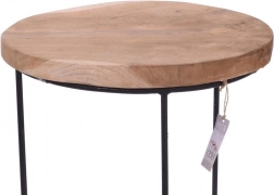 Zestaw trzech okrągłych stolików w różnych rozmiarach umożliwia łatwe dopasowanie aranżacji przestrzeni. Lite blaty z naturalnego drewna tekowego wyróżniają się pięknym usłojeniem i odpornością, a stabilna metalowa podstawa z czarną proszkową powłoką podkreśla nowoczesny, industrialny wygląd.