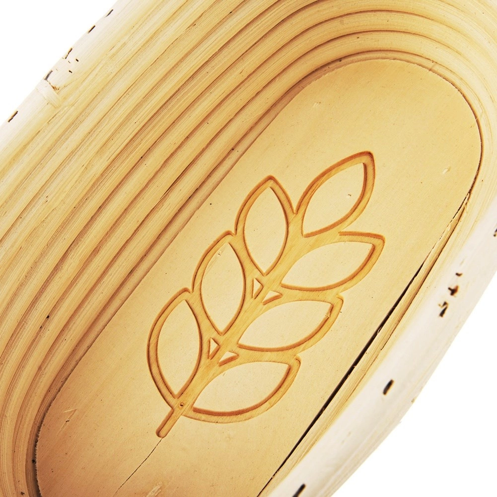 Praktyczny owalny koszyk z naturalnego rattanu jest idealny do wyrastania ciasta chlebowego o masie około 1 kg (ok. 500 g mąki). Żebrowana struktura wewnętrzna i motyw kłosa na dnie tworzą na bochenku dekoracyjny odcisk, a wyższe ścianki pewnie podtrzymują ciasto, aby po wyłożeniu na blachę nie rozlewało się.