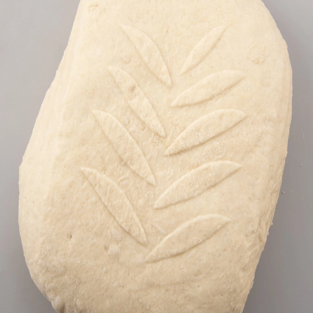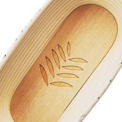 Drewniane dno z motywem liścia pozostawia na bochenku elegancki wzór, który podkreśla domowy, rzemieślniczy charakter Twojego chleba.