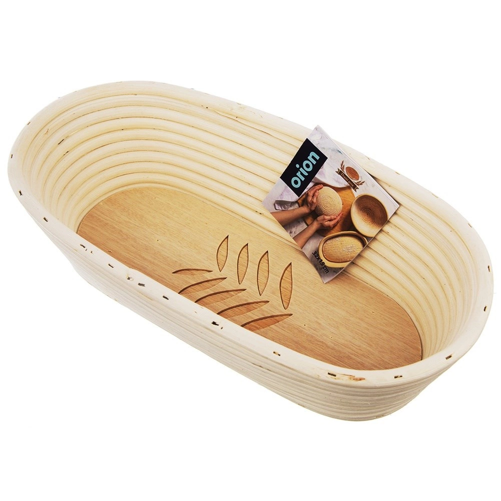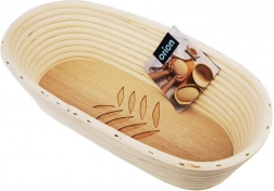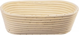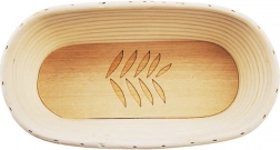 Owalny rattanowy koszyk do wyrastania chleba o pojemności na bochenek ok. 1,5 kg pomaga ciastu zachować kształt i tworzy na skórce piękną strukturę. Wykonany z naturalnego włókna rattanowego w beżowym kolorze, z dekoracyjnym motywem liścia. Idealny do wypieków domowych i profesjonalnych – dla lepszej struktury miękiszu i równomiernego wyrastania. Naturalny materiał, optymalna wentylacja i tradycyjny kształt bochenka dla perfekcyjnego efektu.