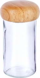 Przejrzyste szkło dla perfekcyjnego wglądu w zawartość oraz drewniana, zakręcana pokrywka, która pomaga chronić przyprawy przed wilgocią i wydłuża ich świeżość.