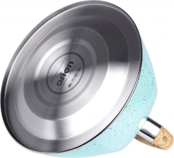 - Stal nierdzewna, powierzchnia emaliowana; uchwyt z tworzywa termoodpornego w dekorze drewna